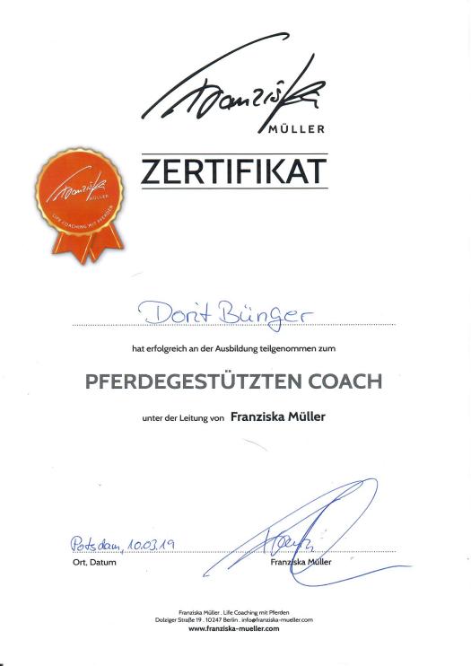 Mit der Ausbildung zum „Pferdegestützten Coach“ bei Franziska Müller, möchte Dorit Menschen ermutigen sich ganz wahrzunehmen und anzunehmen für ein Leben mit mehr Freude und Gelassenheit.